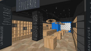 Francúzski majitelia konceptu La Fabuleuse Epicerie - "Famózne potraviny" si nechali interiér prevádzky vytvoriť a dizajnovo zariadiť na mieru podľa dobre fungujúceho vzoru prvej predajne otvorenej na Francúzskej riviére, v meste Nice.